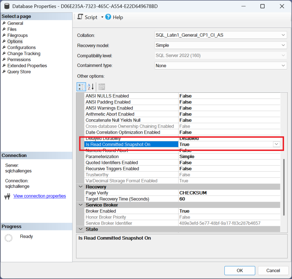When the scenario was designed for you, “Read Committed Snapshot Isolation” was activated for the database, among other things.